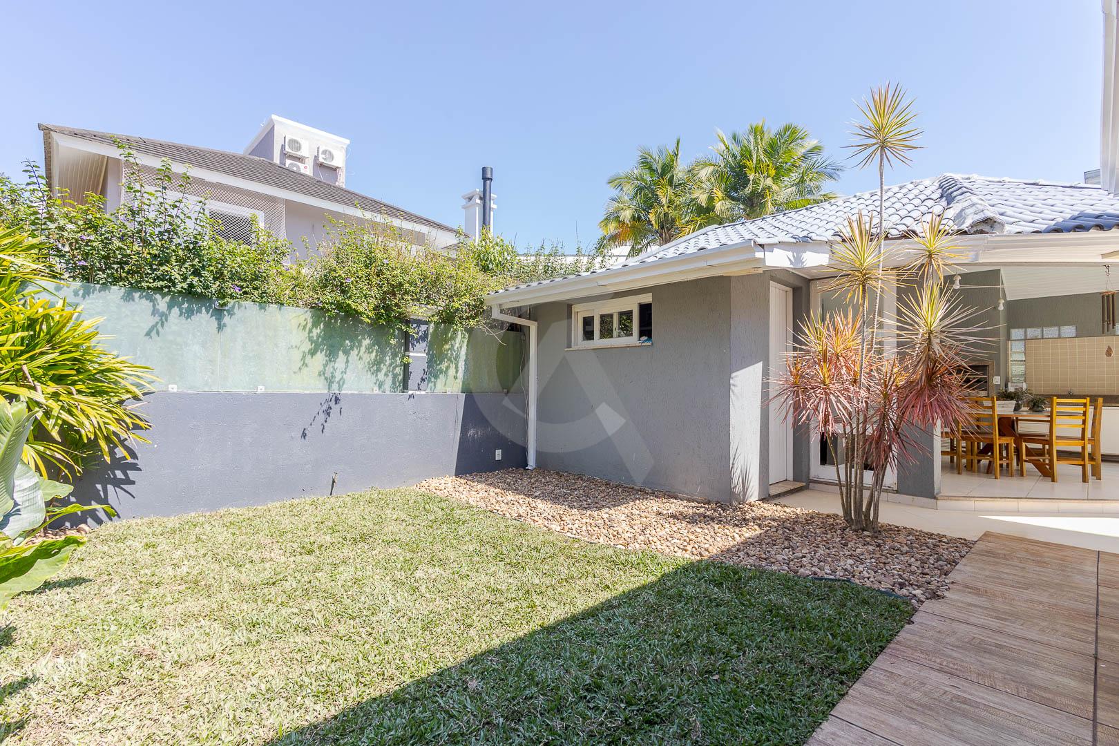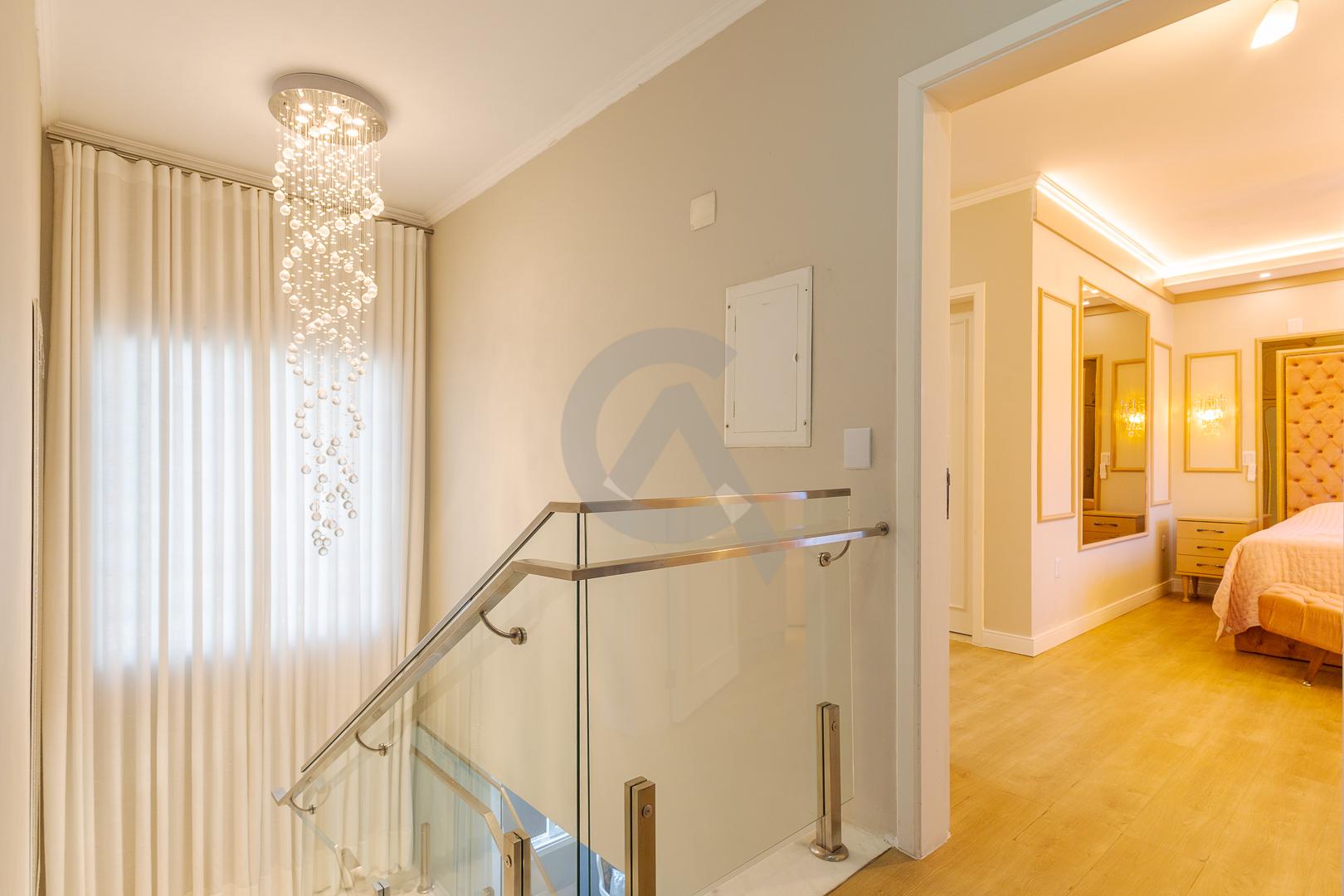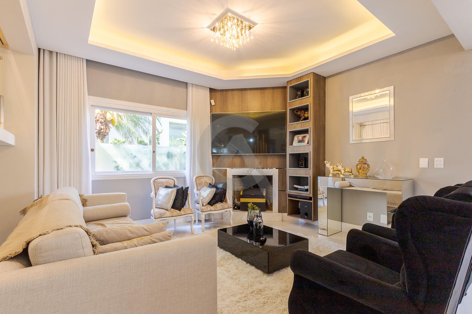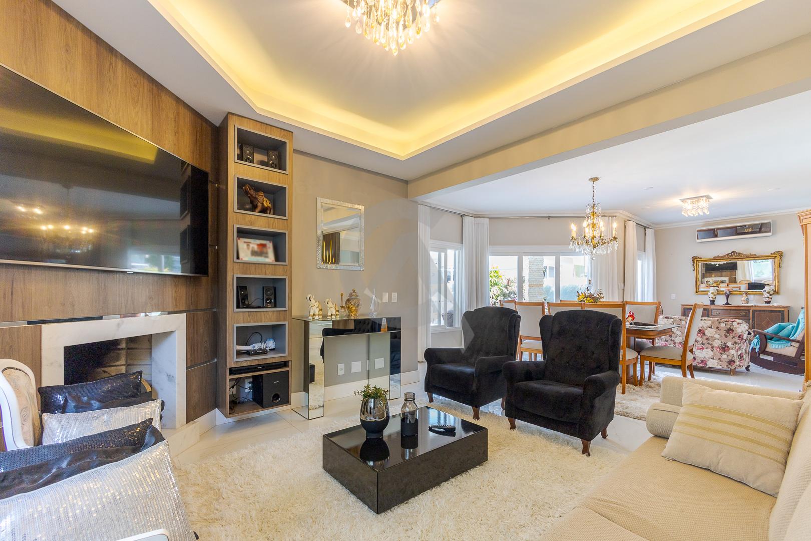 Charmosa casa em condomínio fechado, alto padrão, mobiliado, 4 dormitórios (sendo 1 suíte master com closet e hidromassagem), hall de entrada, escritório, ateliê, cozinha planejada, sala de televisão com lareira, sala de estar, sala de jantar, 4 banheiros, varanda, piscina com cascata de pedra, quiosque com churrasqueira e garagem para 2 carros.