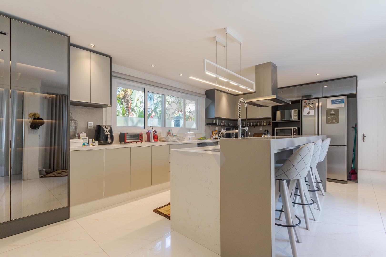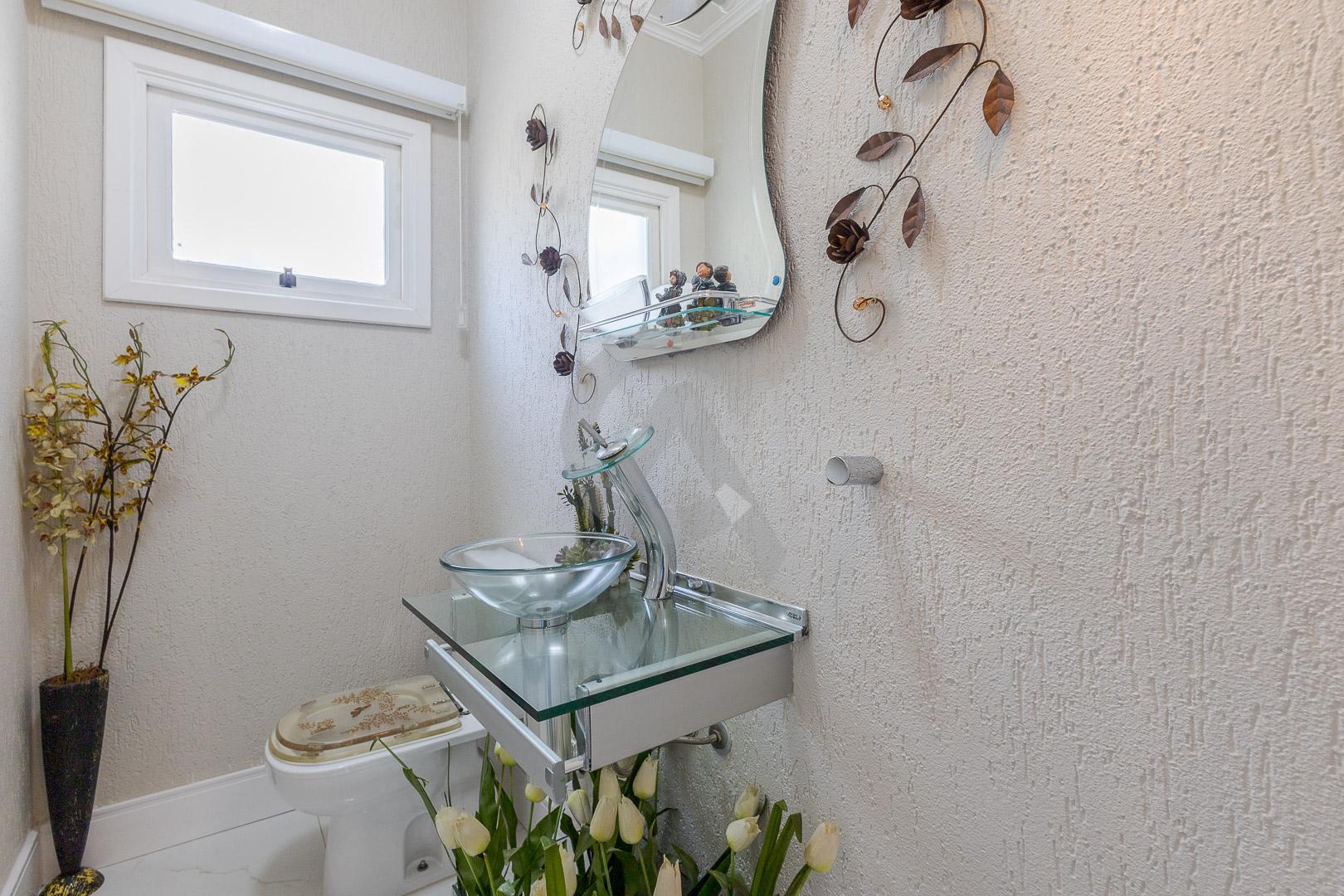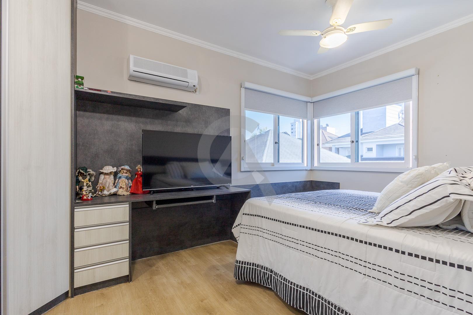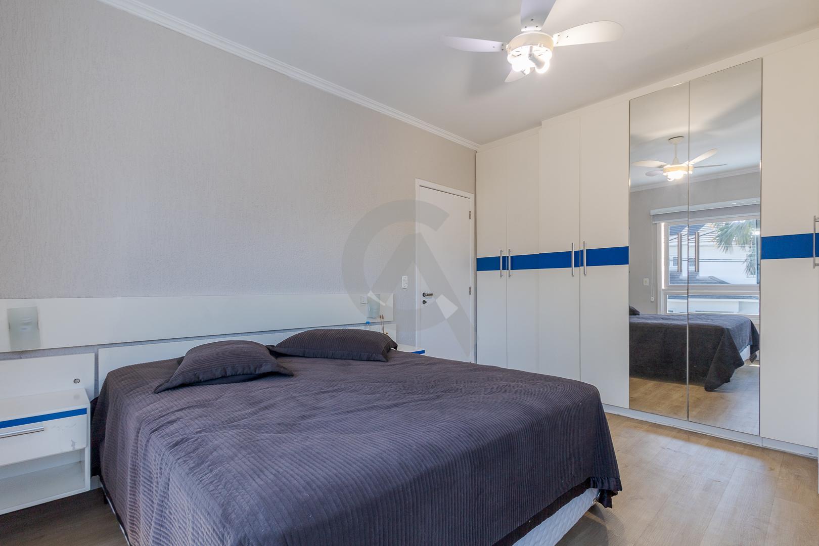 Charmosa casa em condomínio fechado, alto padrão, mobiliado, 4 dormitórios (sendo 1 suíte master com closet e hidromassagem), hall de entrada, escritório, ateliê, cozinha planejada, sala de televisão com lareira, sala de estar, sala de jantar, 4 banheiros, varanda, piscina com cascata de pedra, quiosque com churrasqueira e garagem para 2 carros.
