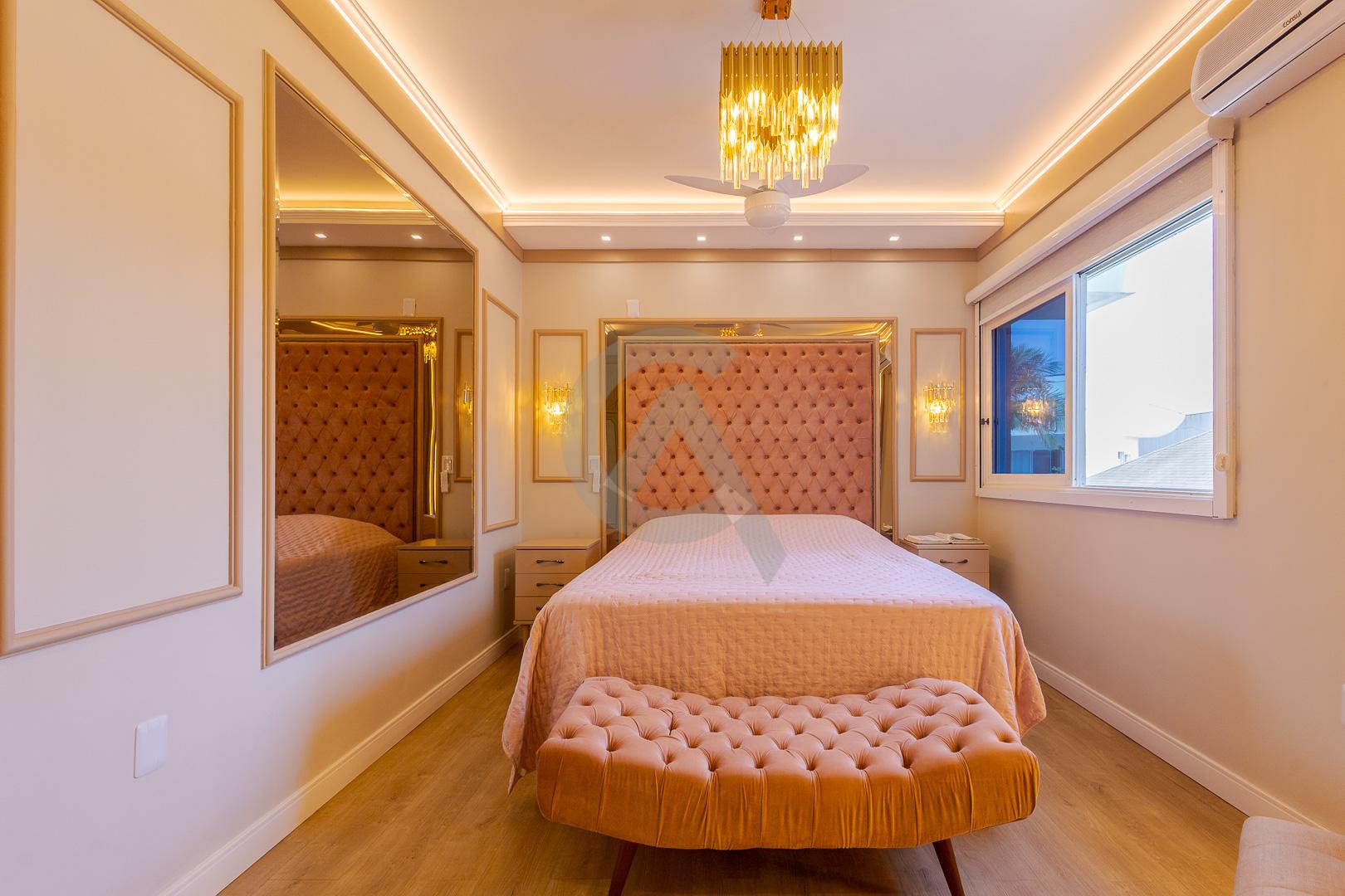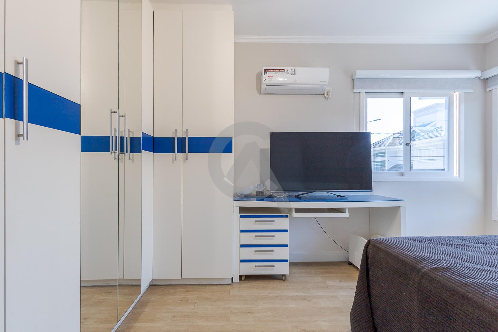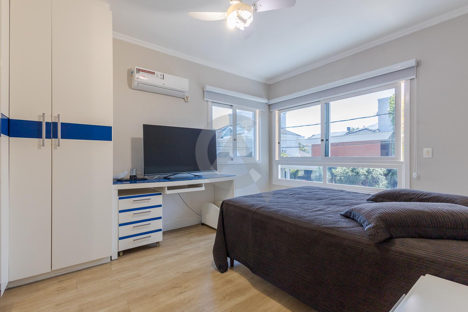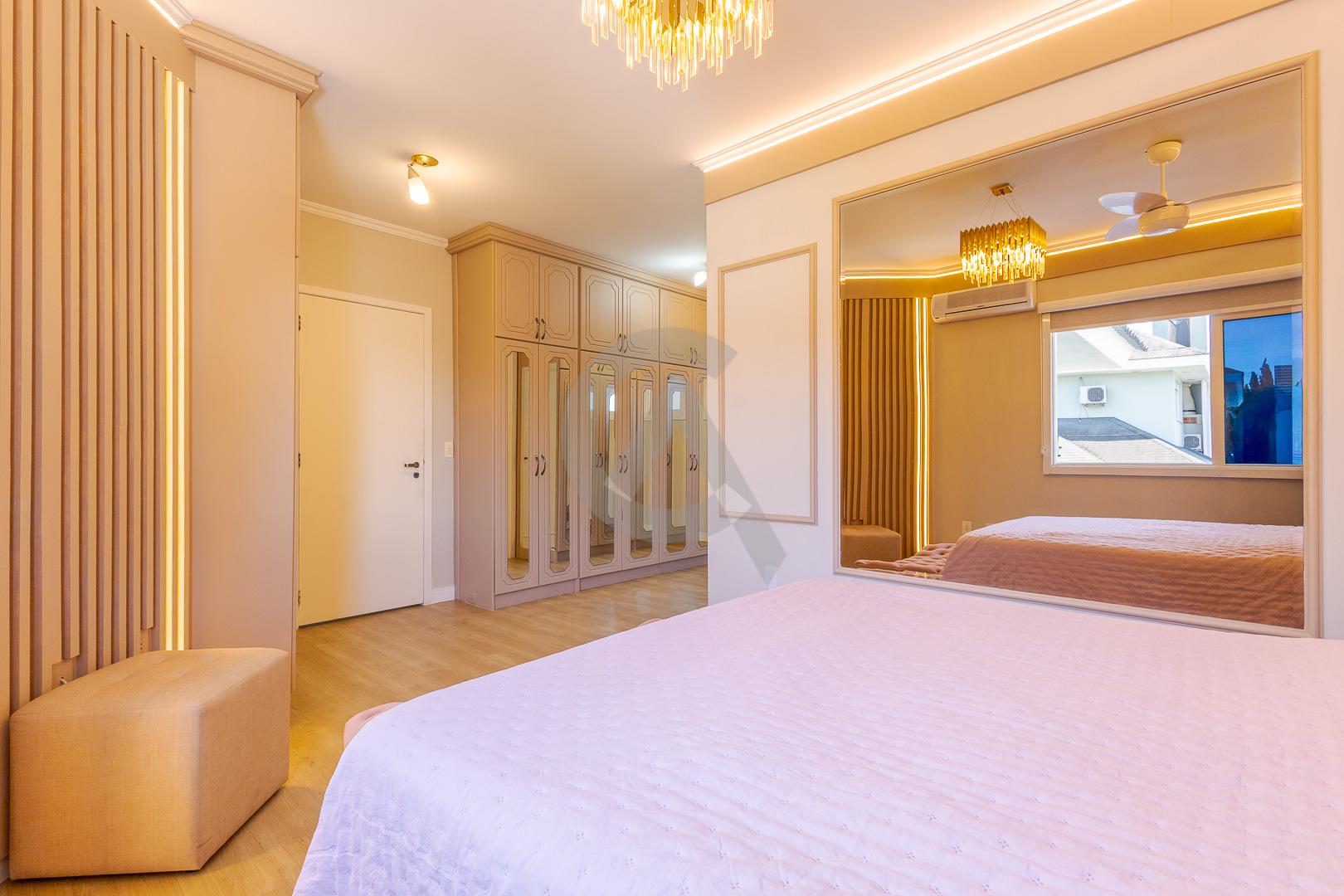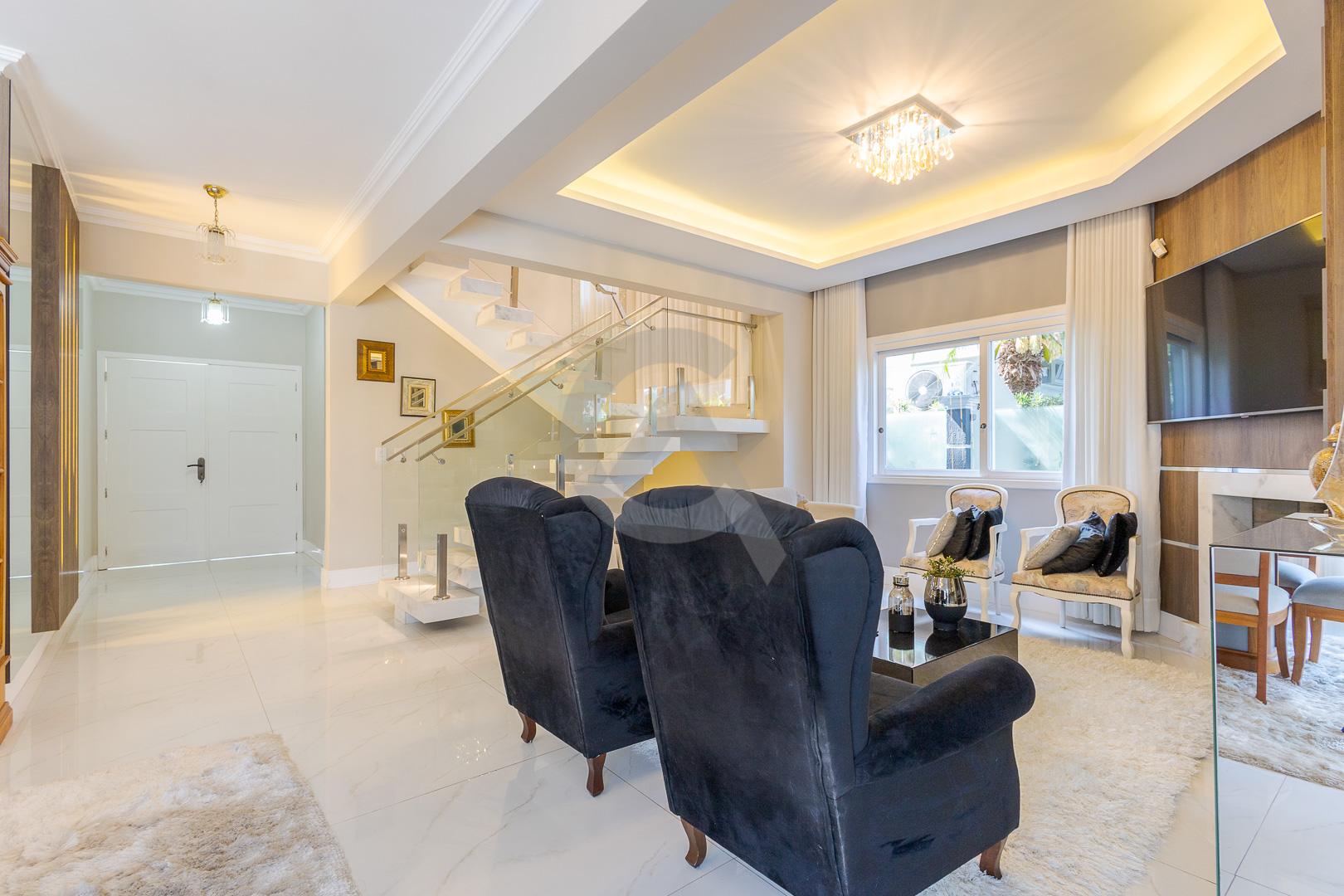 Charmosa casa em condomínio fechado, alto padrão, mobiliado, 4 dormitórios (sendo 1 suíte master com closet e hidromassagem), hall de entrada, escritório, ateliê, cozinha planejada, sala de televisão com lareira, sala de estar, sala de jantar, 4 banheiros, varanda, piscina com cascata de pedra, quiosque com churrasqueira e garagem para 2 carros.